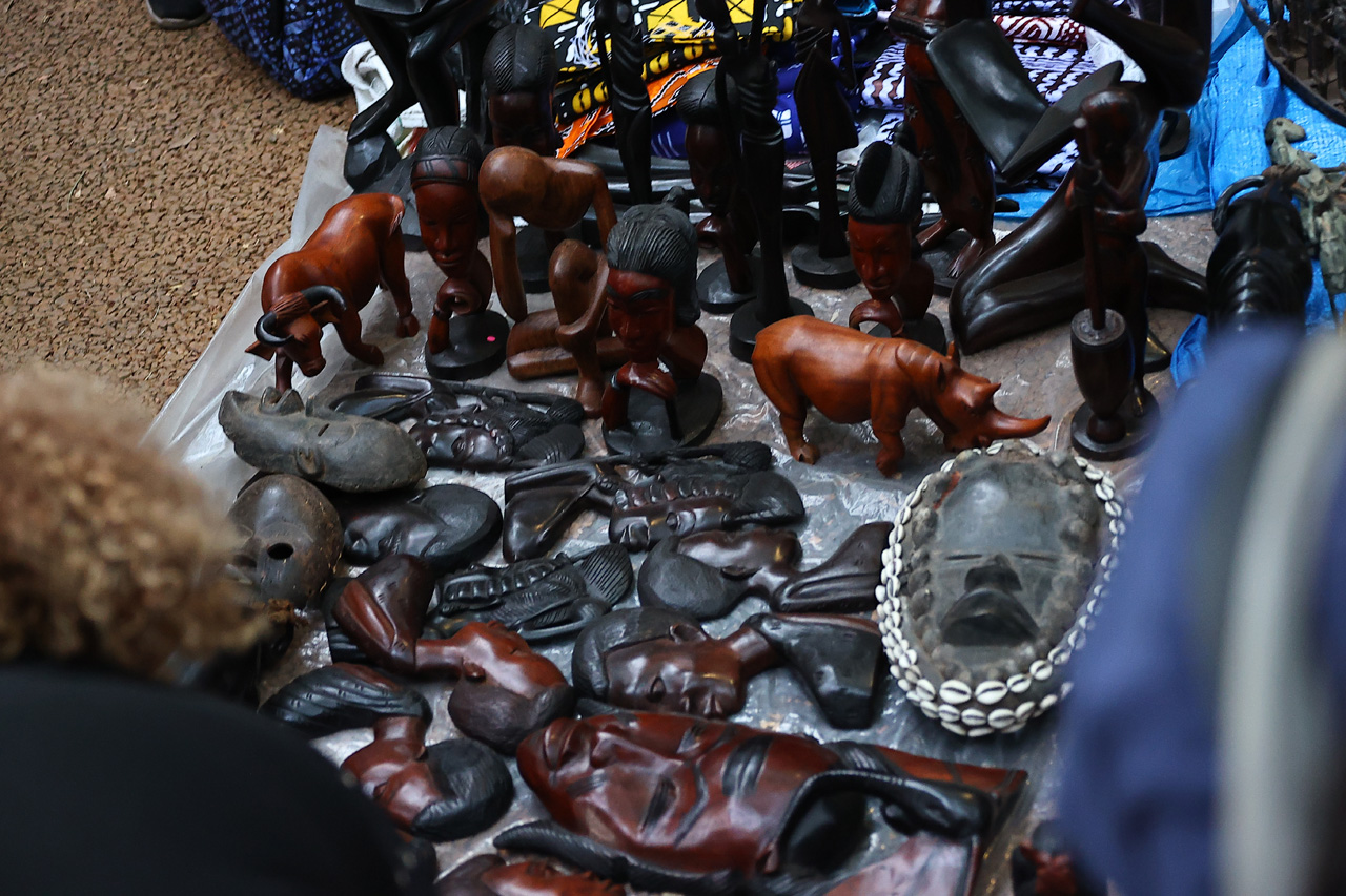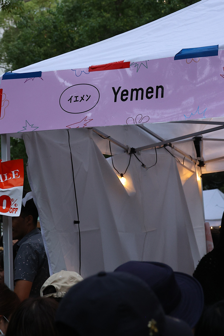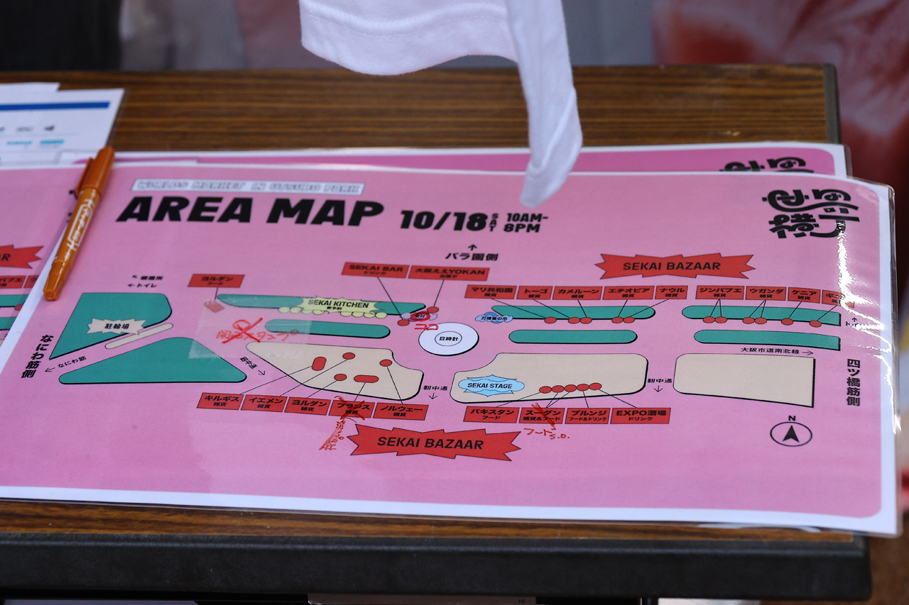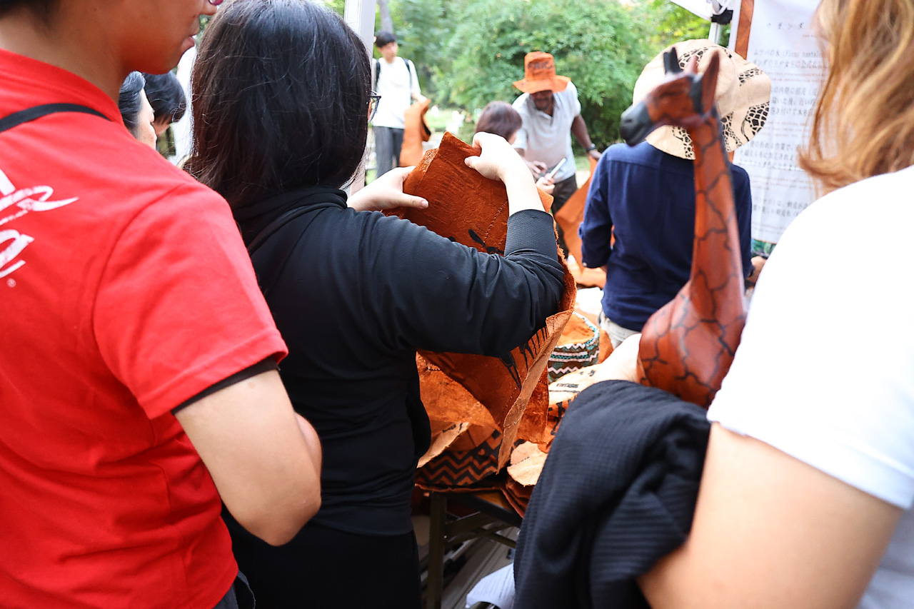 大阪・関西万博のパビリオンスタッフらと展開するイベント。入場無料でさまざまな国や地域の人がフードや雑貨を販売している。