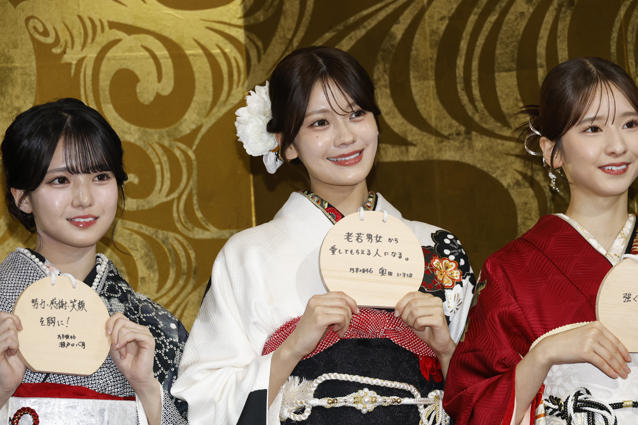 アイドルグループ『乃木坂46』5期生・五百城茉央と奥田いろはと菅原咲月、6期生・愛宕心響と瀬戸口心月が1月8日に東京・乃木神社で成人式を行った。