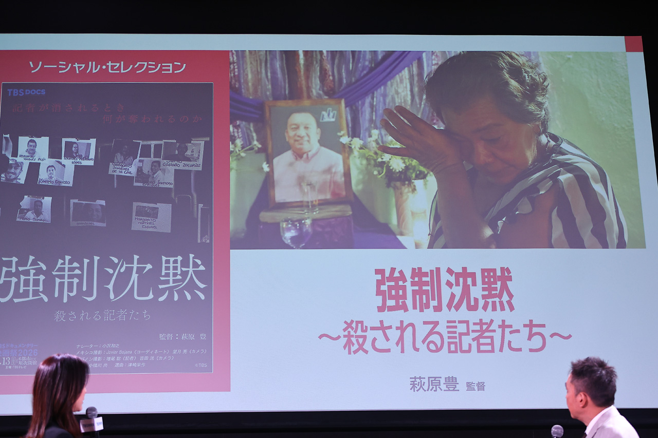 今回16作品が公開。そのなかから自分のオススメを発表するコーナーが開催。小川アナは萩原豊監督の『強制沈黙~殺される記者たち~』を勧める。「タイトルからまずドキッとさせられます。メキシコで踏み込んだ取材をする記者の方々が次々と殺害されていくと。その背景には権力の腐敗と暴走があって……。異国の物語ではあるんですけれど、実際にこうしたことが起きているということにまず戦慄します。そこから記者のみなさんが、それでもペンを持つ手を諦めないで立ち向かっていく。その姿には同じその報道に携わるものとしては、背筋が伸びる思いがしました。私たちの手元に届いている映像の一瞬だったり、文章の一行を持ち帰るために命を懸けた人だっているかもしれない、ということを想像させる映画です。この映画を見終わったあと、ニュースの見方も変わるのではないか。そういうきっかけにして頂けるんじゃないかな、って思う作品です」。