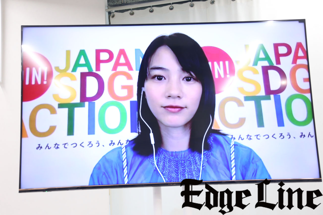 『SDGs』という言葉をいつ知ったのかへ、「選んで頂いて初めて認識しました」とはにかみながら話すのん。