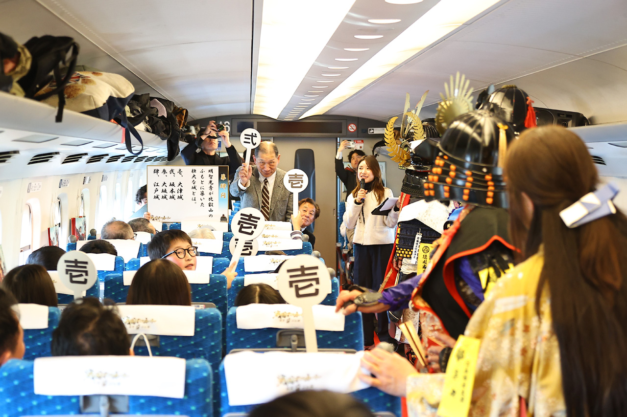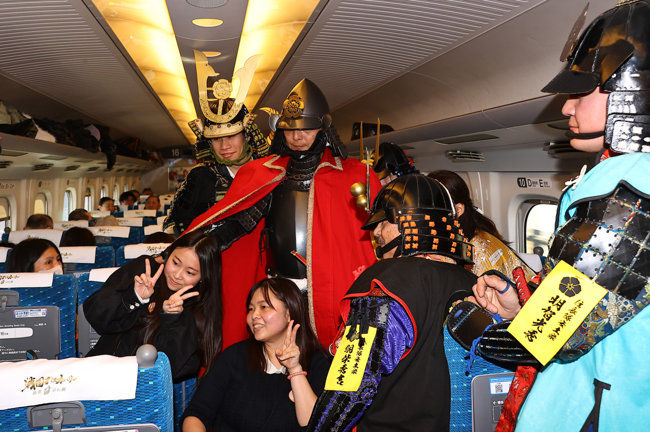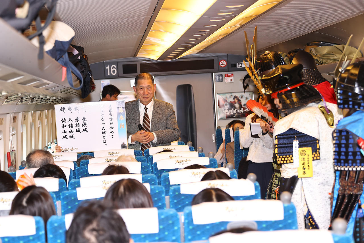 滋賀県観光キャンペーン『戦国ディスカバリー 滋賀・びわ湖』の一環となる東海道新幹線貸切イベント『戦国浪漫号』が2月1日に東京・JR品川駅と滋賀・米原駅の間で運行された。