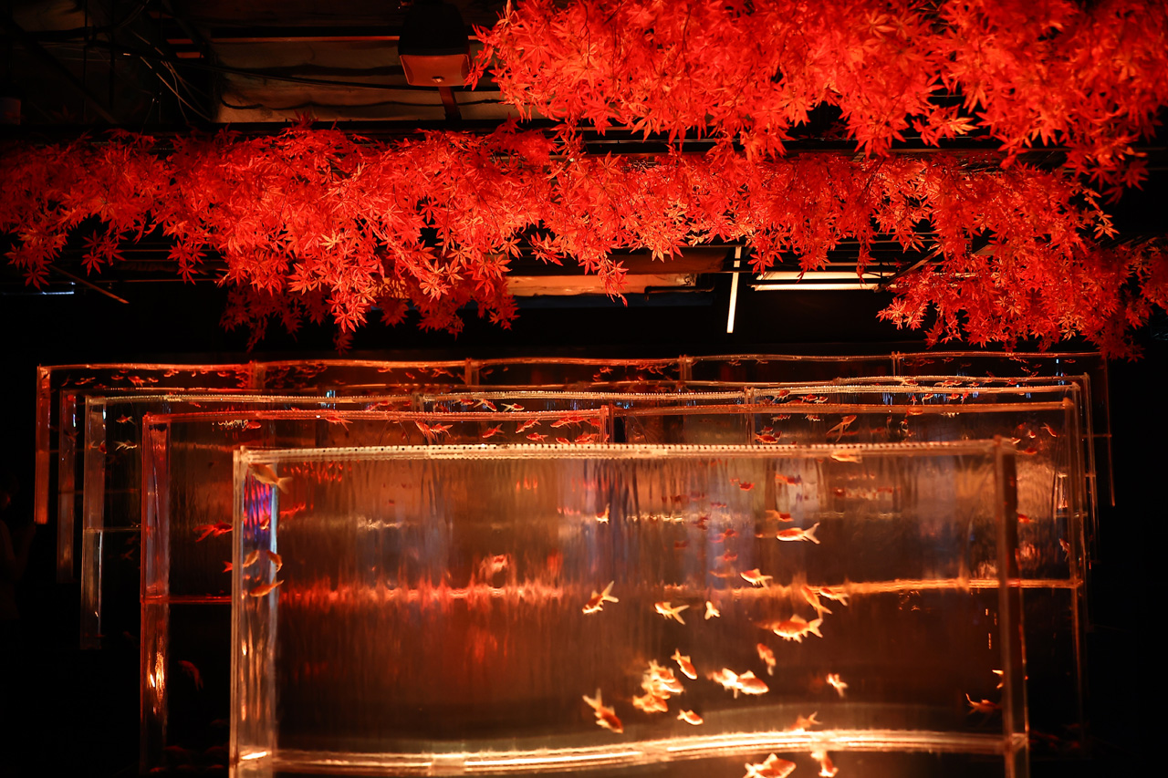 『アートアクアリウム美術館GINZA』は2022年5月に銀座三越に誕生。金魚鑑賞という江戸時代から続く文化を、光の使い方と音楽、芸術作品“アートアクアリウム”として現代に表現し、四季の移ろいを楽しむことができる。